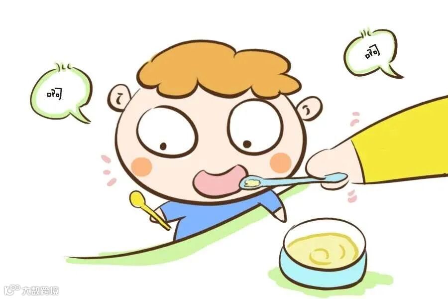 1、宝宝表现出对辅食的兴趣,当大人吃饭时,宝宝会盯着看,或者有抢食物和勺子的举动。