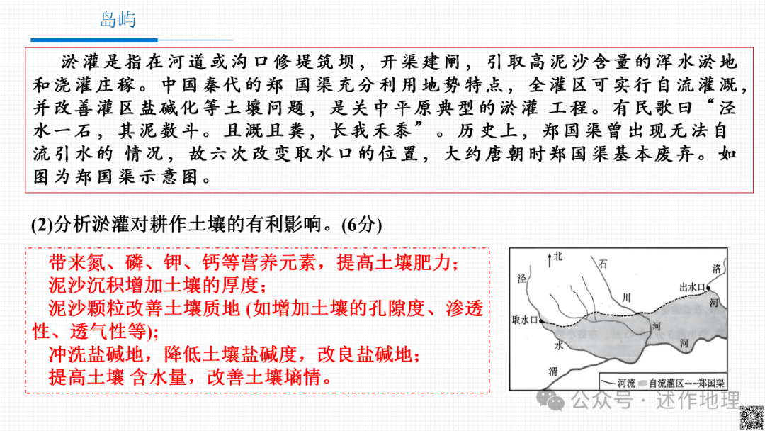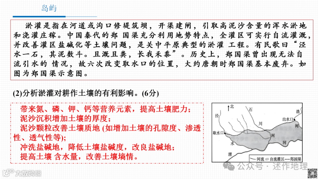 (2)分析淤灌对耕作土壤的有利影响。(6分)