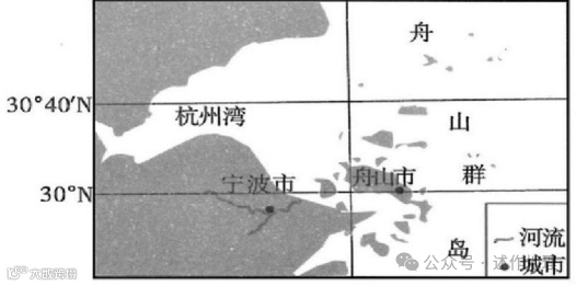 舟山群岛是我国面积最大的群岛,由上千个岛屿组成。舟山群岛的地形以山地丘陵为主,其山地是浙 东天台山脉向东海延伸的余脉。舟山群岛水资源短缺,长期以来当地居民和政府都在积极寻找解决水资源 短缺的办法。如图为舟山群岛位置示意图。据此完成1~3题。