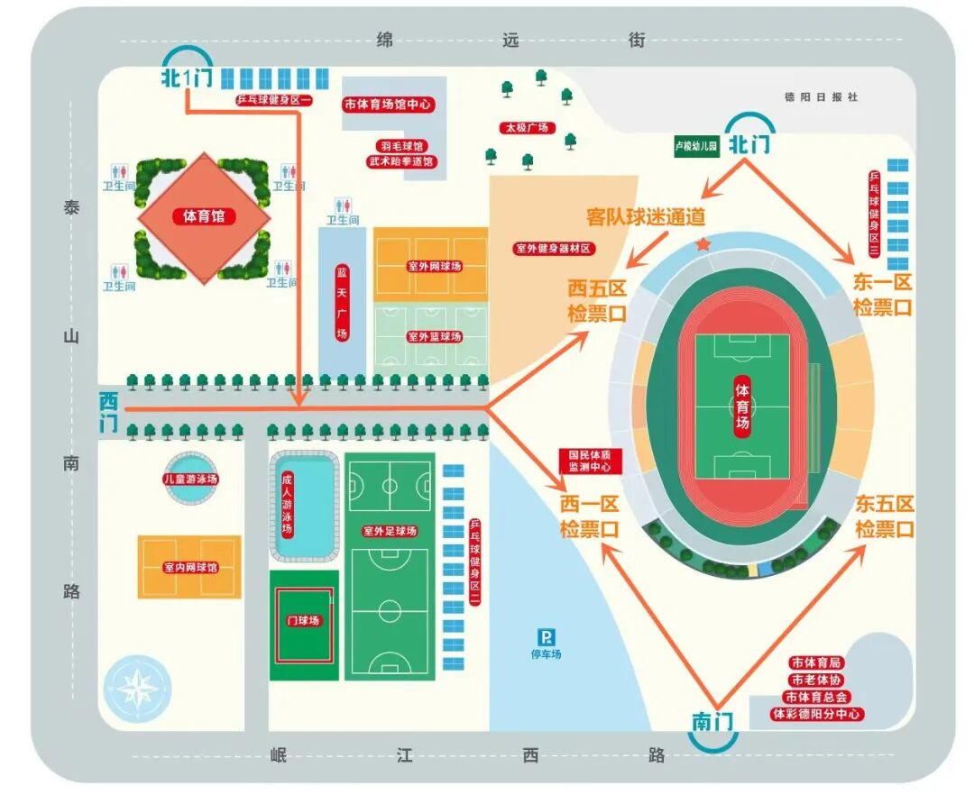 2.由于现场人流量较大,为保证现场人员安全,德阳市体育公园所有入口仅可步行进入。由于比赛现场周边停车位紧张,建议观众朋友乘坐公共交通前往。同时,比赛期间交通管制通告将通过“德阳公安交警”公众号推送,本公众号也会第一时间转发,请保持关注!
