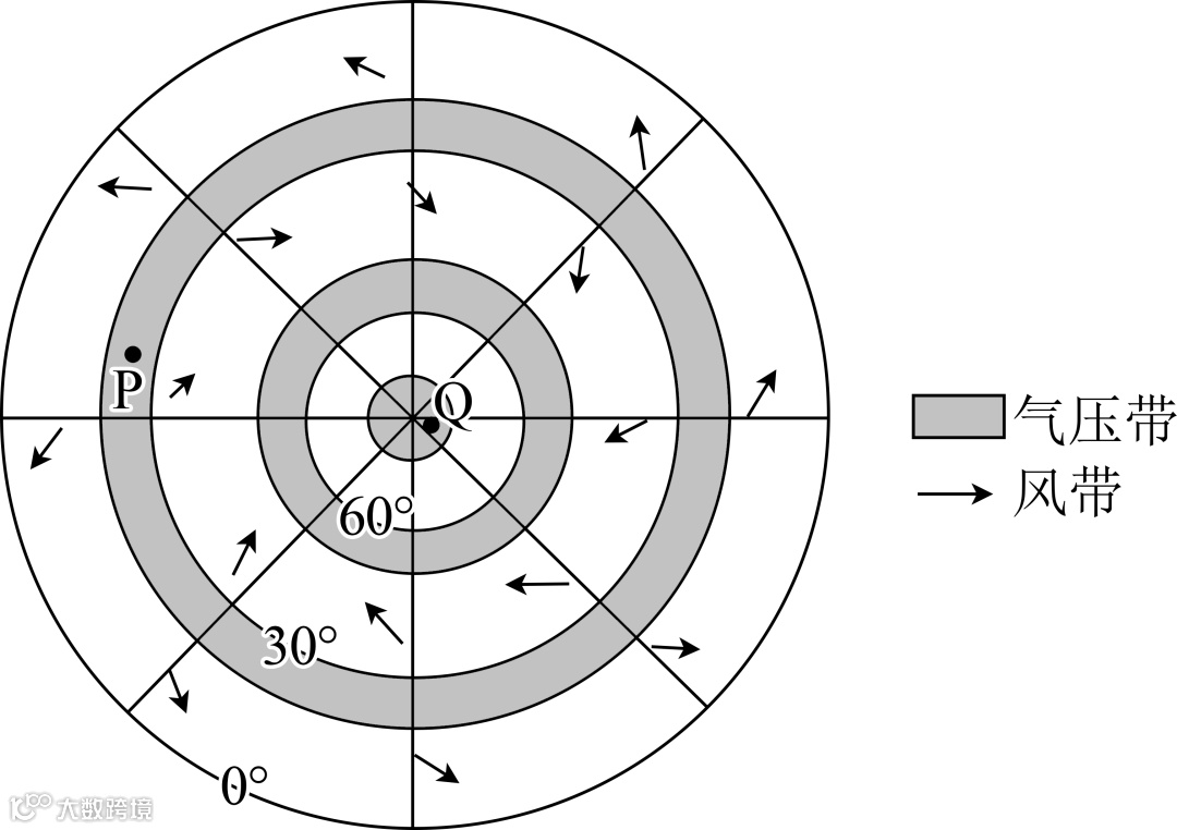 下图为某月某半球气压带、风带示意图。据此完成下面小题。