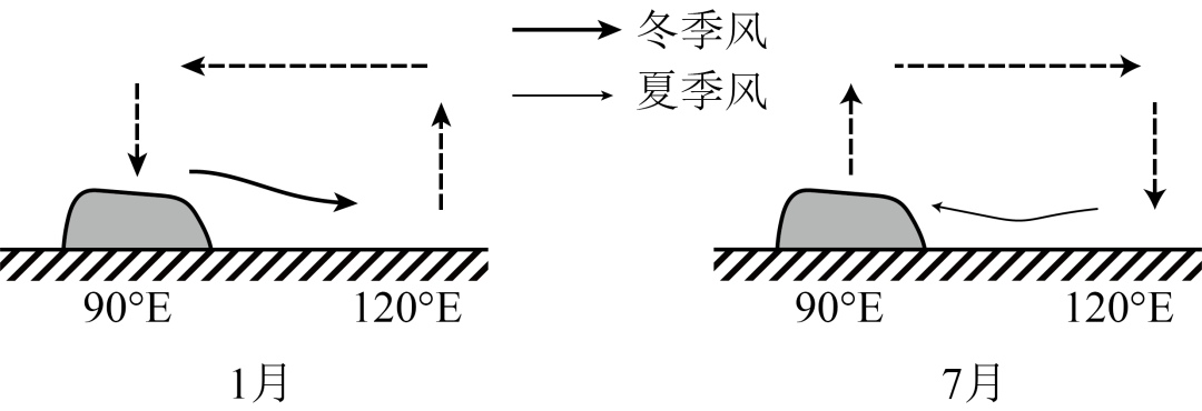 高原季风是由于高原冬、夏季热力作用相反而形成的季节性环流。其中最典型的高原季风位于青藏高原,青藏高原季风对我国东部地区的季风环流产生显著影响。下图示意青藏高原面上的大气受热过程。完成下面小题。