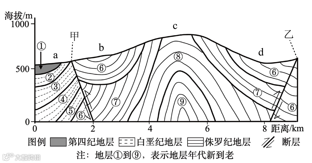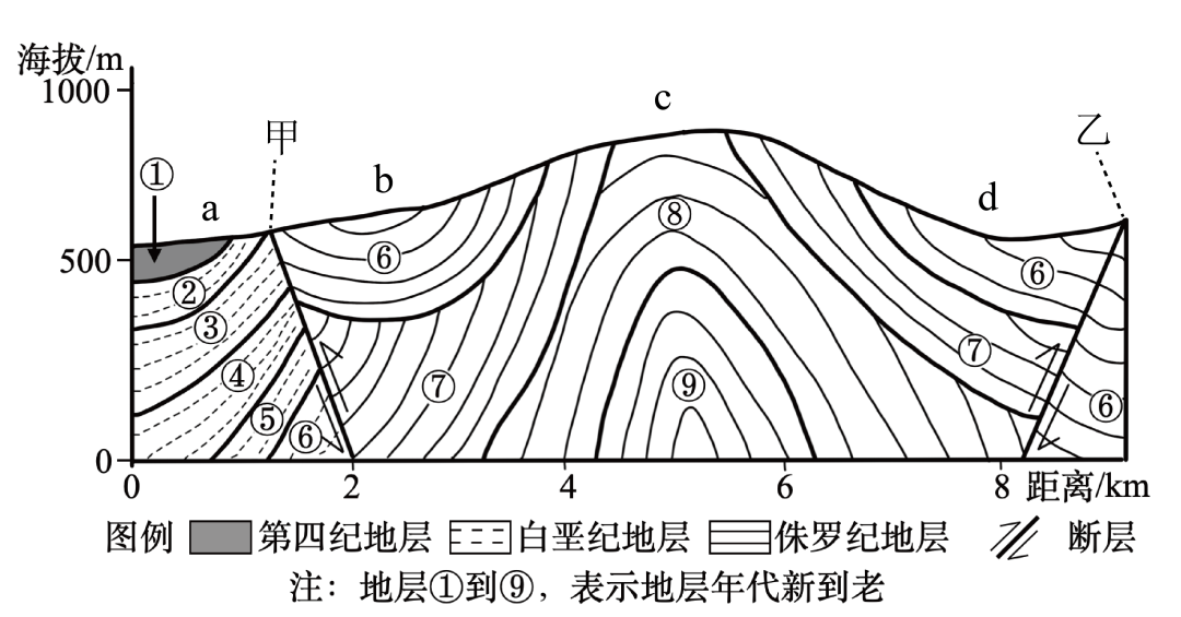 下图为某地地质剖面示意图。读图完成下面小题。