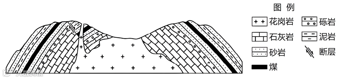 地层的接触关系是指新老地层在空间上的相互接触关系或者叠置状态,不整合接触是其中的一种情况,它是指新老地层不平行并且不连续。下图示意某地地质剖面图。据此完成下面小题。