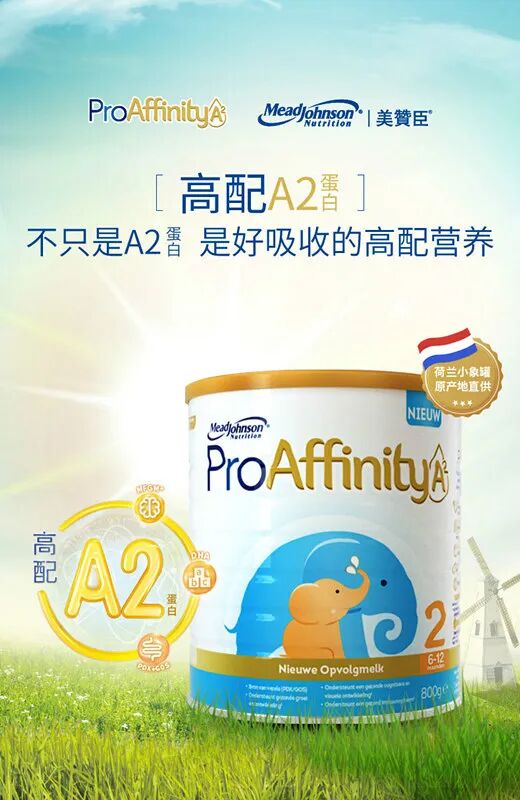 美赞臣ProAffinity A2 100%荷兰制造,荷兰品质,具备符合欧盟最高的奶源品质标准,从源头上保证原奶质量。
