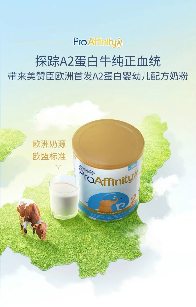 百年品牌美赞臣在今年3月推出的欧洲第一款高配A2蛋白婴幼儿配方奶粉——美赞臣ProAffinity A2。美赞臣高配A2蛋白比一般牛奶蛋白在基因结构中和人类母乳更接近,更亲和宝宝肠胃。
