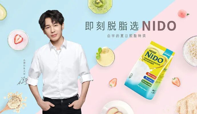 没错,就是由白宇代言的雀巢脱脂NIDO奶粉!