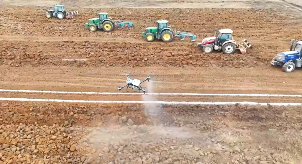 苏垦农发云台分公司总经理陈宽兵说,“目前,我们云台农场耕地已实现无人机播种、施肥、撒药及巡田的全覆盖。在无人机的北斗终端中输入田块坐标边界,无人机就会自动规划航线,肥料喷洒重叠率误差小于5厘米。这样可以让小麦吸收更均匀,比普通农机喷洒的效果更好。”