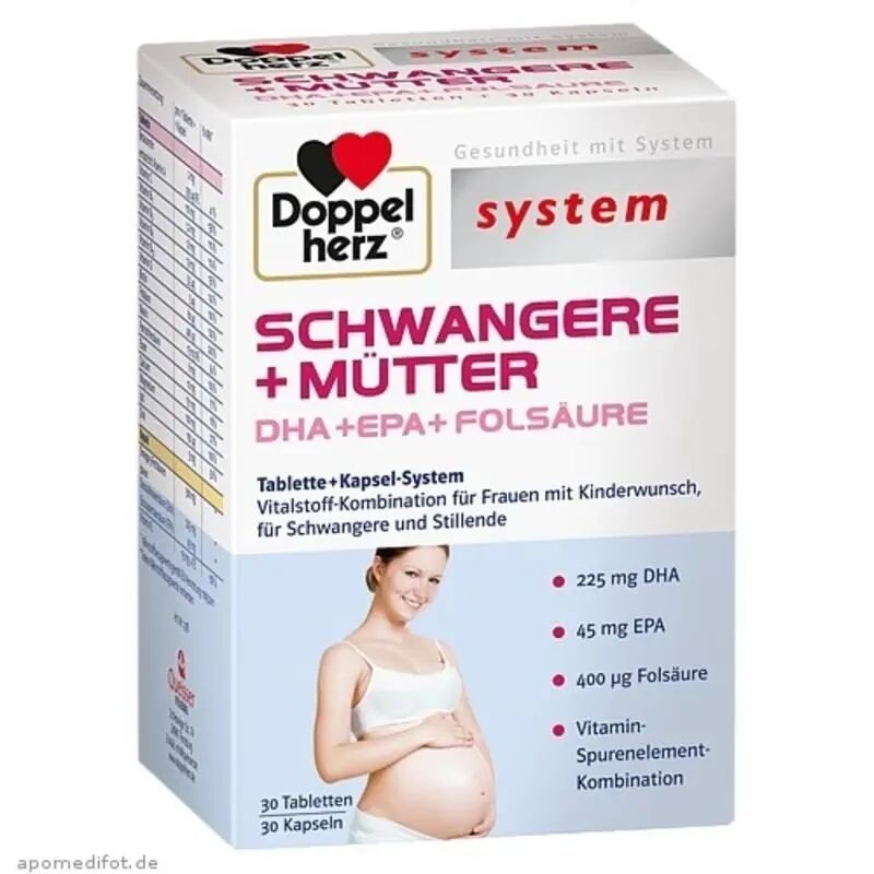 【德国仓】Doppelherz 双心 高端孕妇叶酸DHA备孕孕中哺乳期60粒