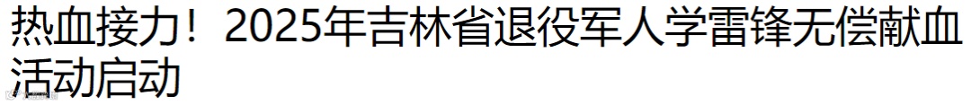 人民网刊发《热血接力!2025年吉林省退役军人学雷锋无偿献血活动启动》,报道本次活动于3月4日至3月16日在全省范围内组织开展,激发全省退役军人参与公益事业的热情,号召全社会关注无偿献血事业,共同为健康吉林贡献力量。