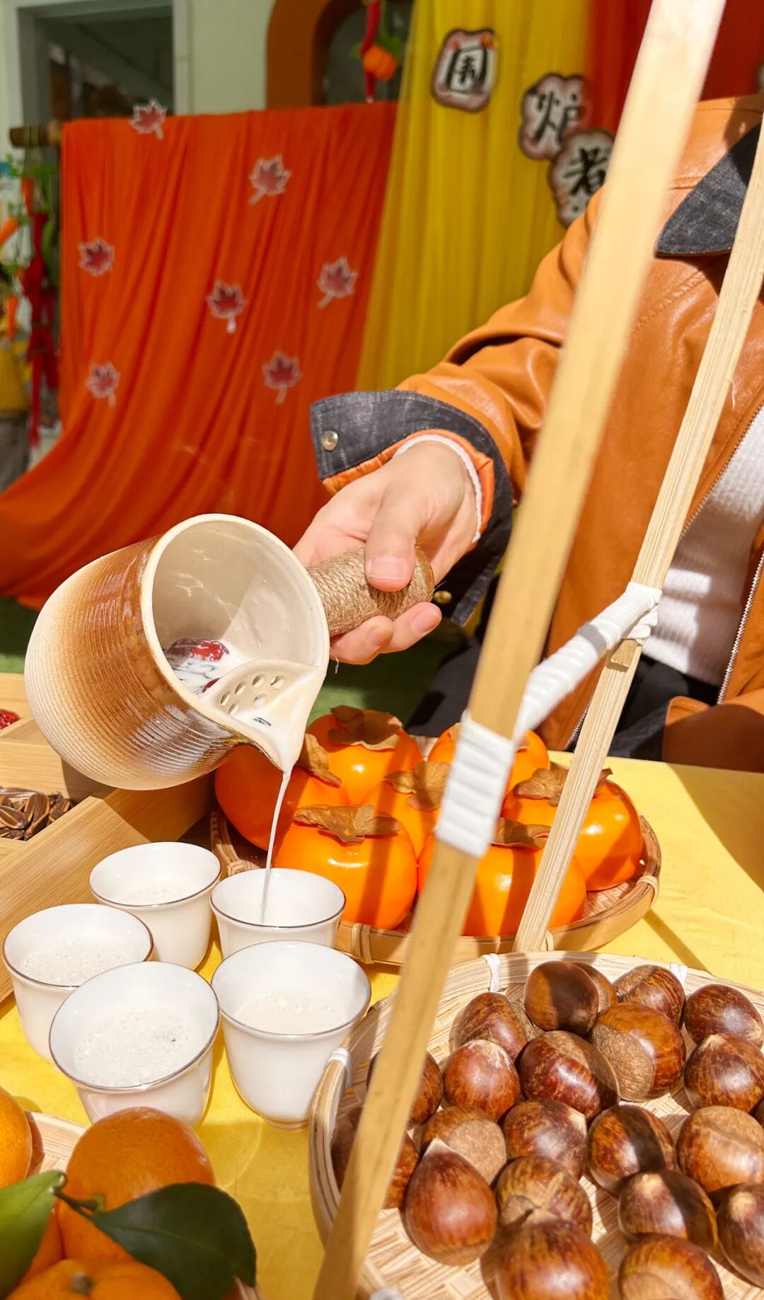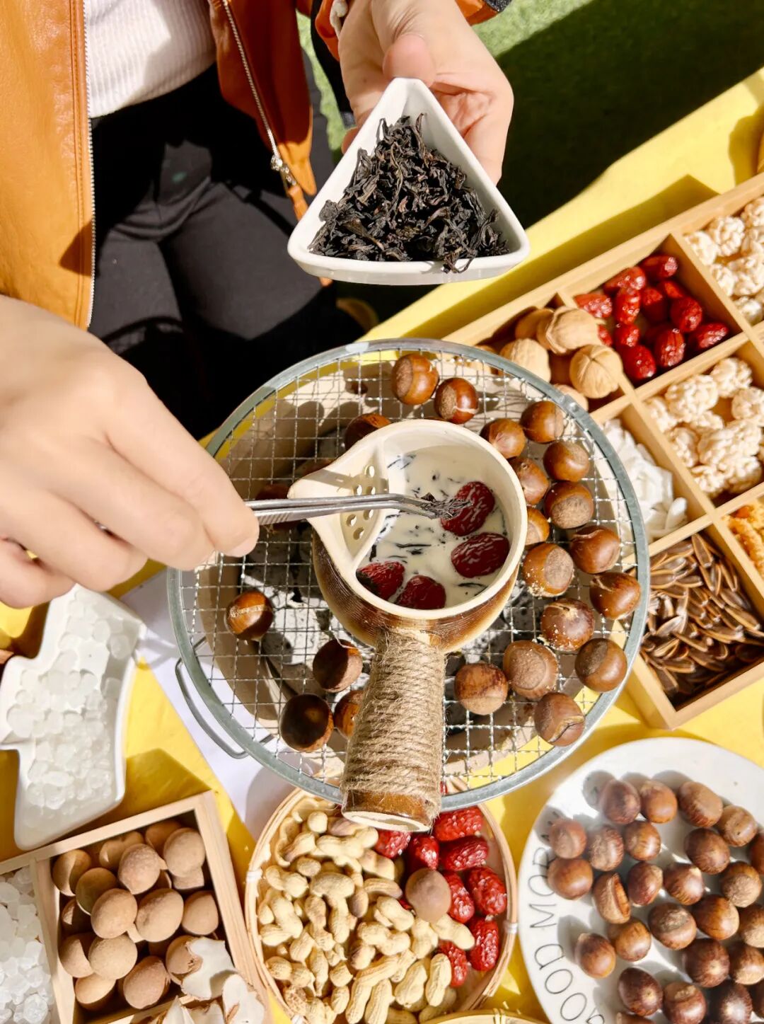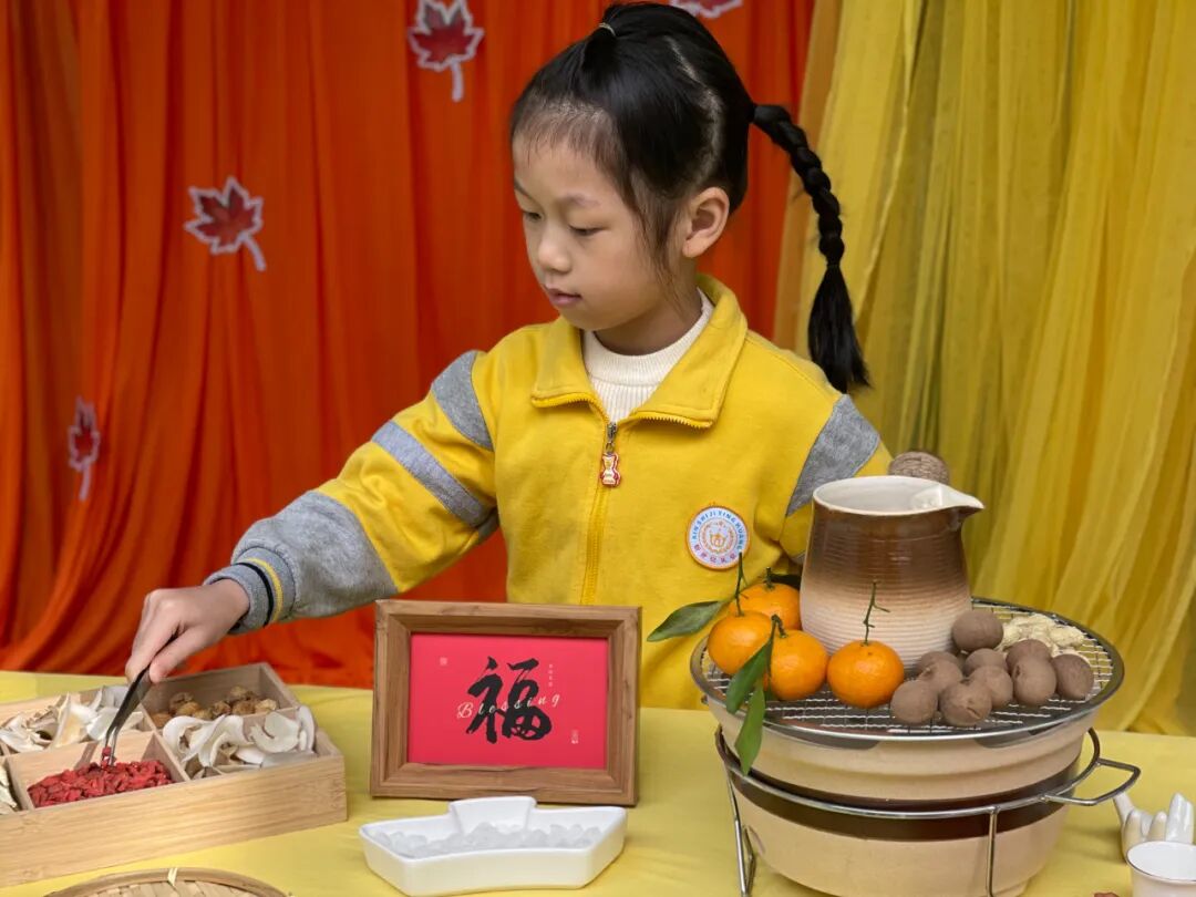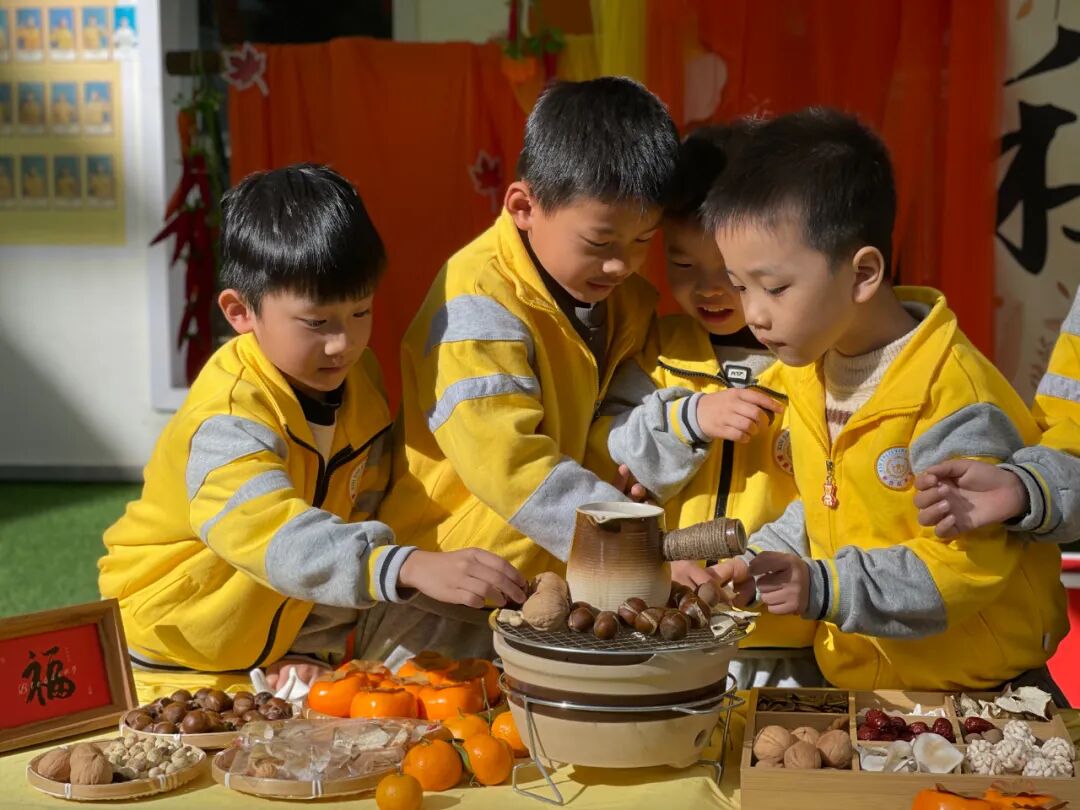 现场茶香四溢,暖炉旁,好奇的“小探险家”们。在园长妈妈的陪伴下,他们小心翼翼地递上食材,有的帮忙摆放干果,有的仔细观察茶汤翻滚,有的则把葡萄干、红枣分给身边的小伙伴。大家围坐在一起,一边品尝,一边轻声交谈,软糯的笑声与炉火烧得“噼啪”声交织,把冬日的温暖都装进了小小的心房。
