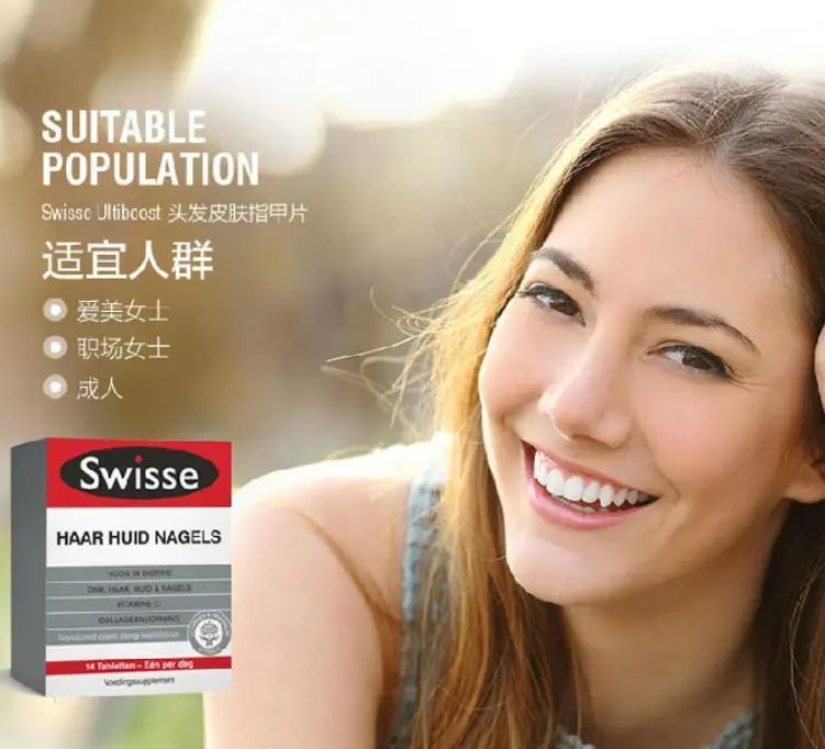 SWISSE 护肤护发护甲片采用二氧化硅和维生素C配方,促进人体胶原蛋白的生成与代谢,有助于保持健康的头发、皮肤和指甲;并含有锌,促进轻伤愈合和皮肤健康。含有生物素,有助于强化柔软、变脆的指甲,并减少断裂和分裂。