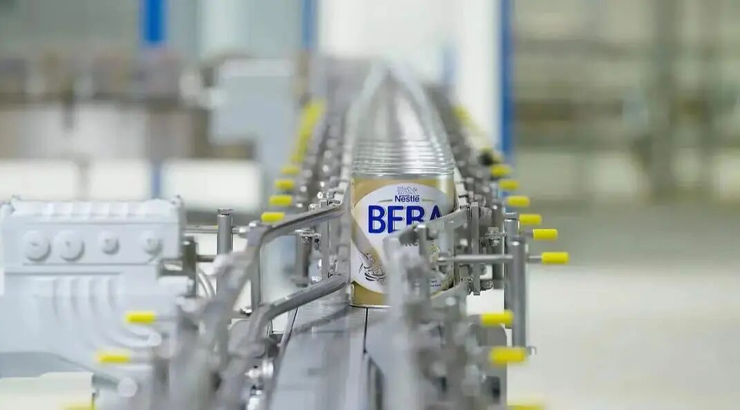 雀巢工厂,低温保鲜的运奶车将新鲜的有机奶源从牧场运到工厂,经过专业的「NAN液能锁原」工艺,加工出雀巢Beba贝巴至尊奶粉