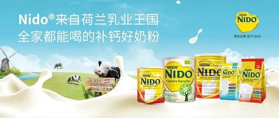 自1944年起,雀巢开始在雀巢生产NIDO奶粉,是当今世界知名的全家营养奶粉品牌,NIDO致力于为全球消费者提供营养健康的奶产品,如今,每天有6000万杯NIDO牛奶在全球80多个国家售出,NIDO已经成为优质奶粉的代名词。