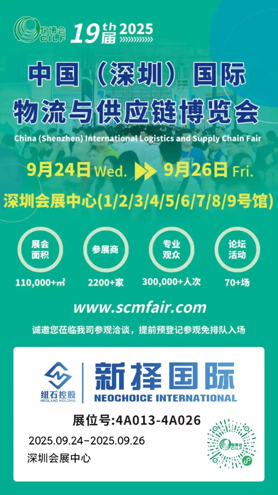 2025年9月24-26日,新择国际将亮相第19届中国(深圳)国际物流与供应链博览会(简称中国物博会),期待与您面对面交流合作!