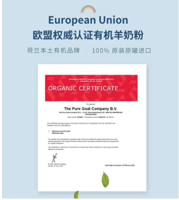 Pure Goat的奶源来自荷兰有机牧场,山羊拥有广袤生存空间,可以自由活动和吃草,遵循自然成长和分娩规律,享受荷兰纯净草场及有机饲料,草场承诺不使用化学杀虫剂或化肥。