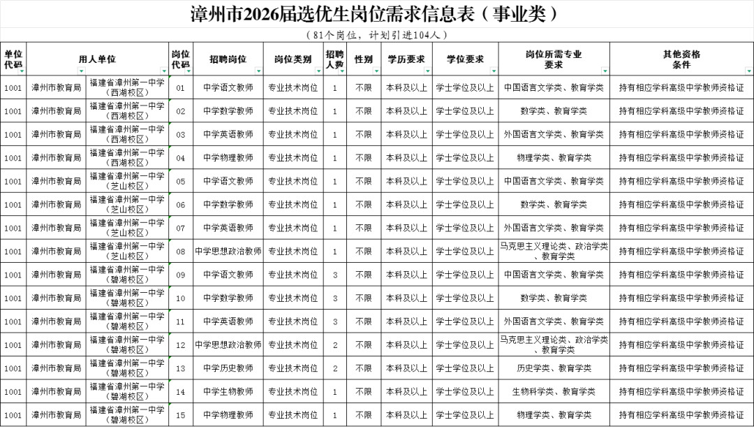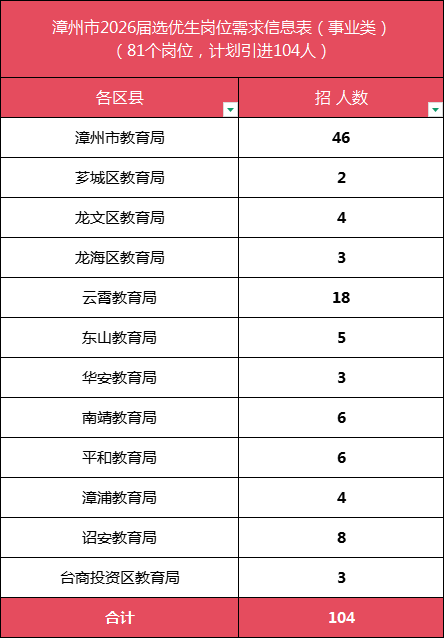 面向以下高校选拔引进优秀毕业生104名(岗位详见附件1):