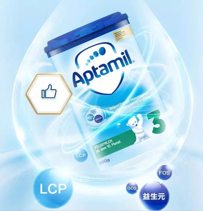 Aptamil爱他美婴儿奶粉内含爱他美专利GOS/FOS益生元组合与LCPS中丰富的铁,促进大脑发育,含有的维他命D,促进骨骼生长,其中另外添加了多种矿物质和维生素,保证宝宝的各项成长指标需要。