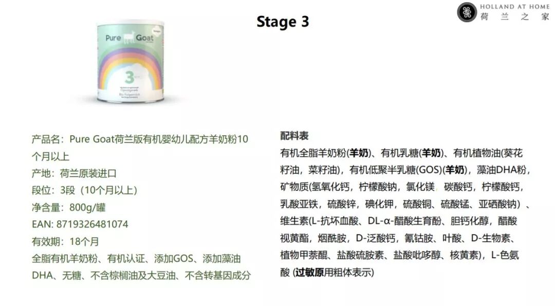 Pure Goat含有有机GOS低聚半乳糖,也是第一款将GOS添加至有机羊奶粉的婴幼儿产品。