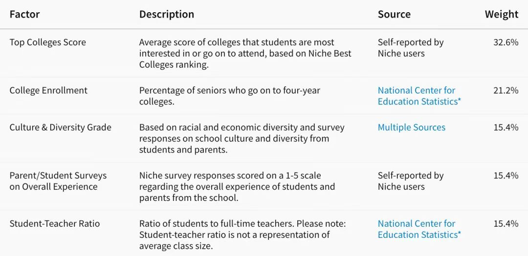 Niche的美高评价参考因素