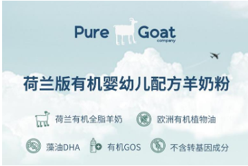 Pure Goat的DHA选取更原始纯粹的原料:藻类。同时奶粉内含有有机GOS低聚半乳糖,也是第一款将GOS添加至有机羊奶粉的婴幼儿产品。不含转基因(动物或植物)成分,不额外添加蔗糖、麦芽糊精。