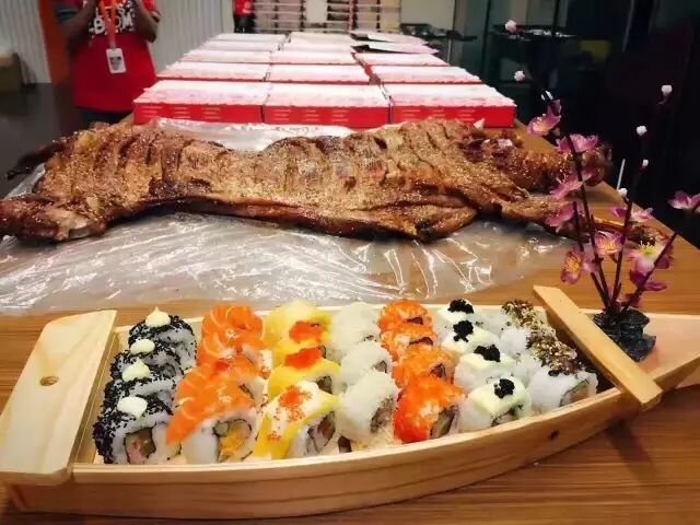 当然员工奋战一线,后勤一定跟上,阿里人准备的各式各样的美食,吃吃吃。前方高能预警,哔哔哔~