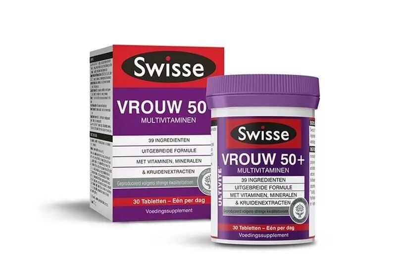 Swisse 50岁以上女性复合营养片全面为五十岁以上女性提供每日所需的必须维生素、矿物质和草本元素,并特别添加抗老化元素。