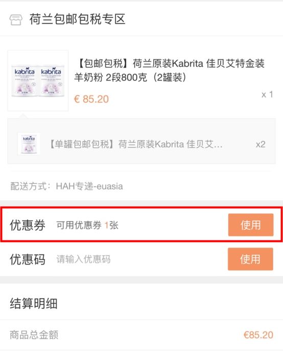 STEP3:选择相应产品,加入购物车进行结算,提交订单前记得选用优惠券哦。