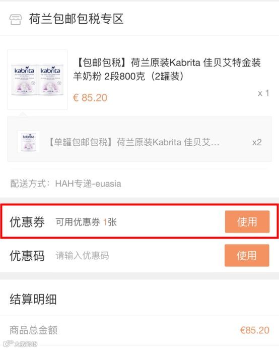 佳贝艾特羊奶粉2罐装限时折上85折!