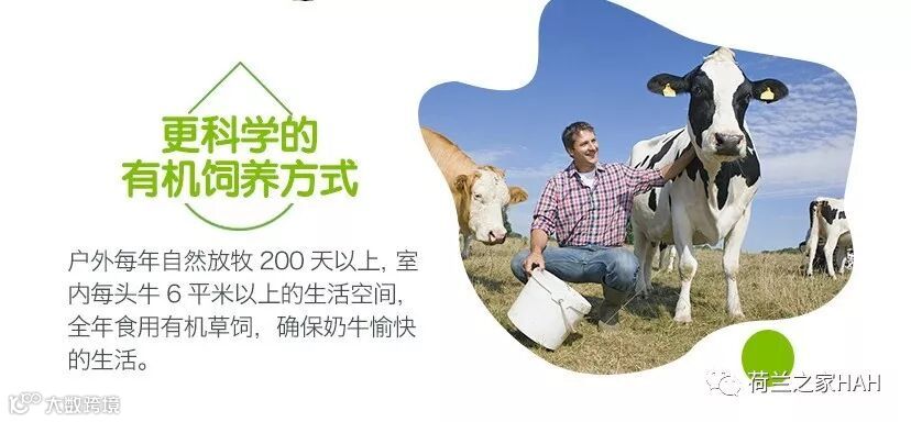 有机奶牛是有机的,饲养过程中不能使用激素、抗性素等,要在自然的环境下自由生长,以保证原奶的品质和口感。和普通奶牛相比,其产出的牛奶富含自然营养成分,如矿物质、铁质和维他命等。