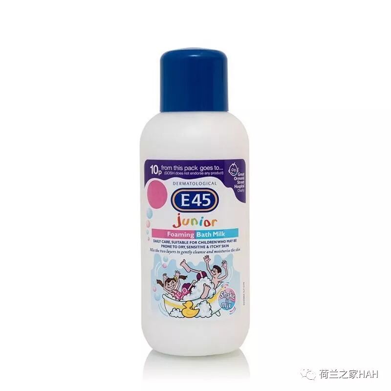 1952年诞生于英国的护肤品牌E45, 60年来畅销全球多个国家和地区。这款泡泡沐浴乳低敏无泪,不含皂质,其专利成分帮助宝宝修护肌肤,抵御硬水伤害。只需洗前摇一摇,就能让宝宝享受洗澡的双重乐趣。