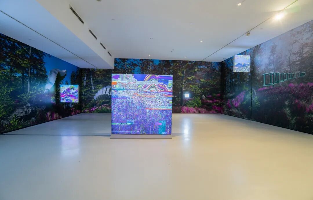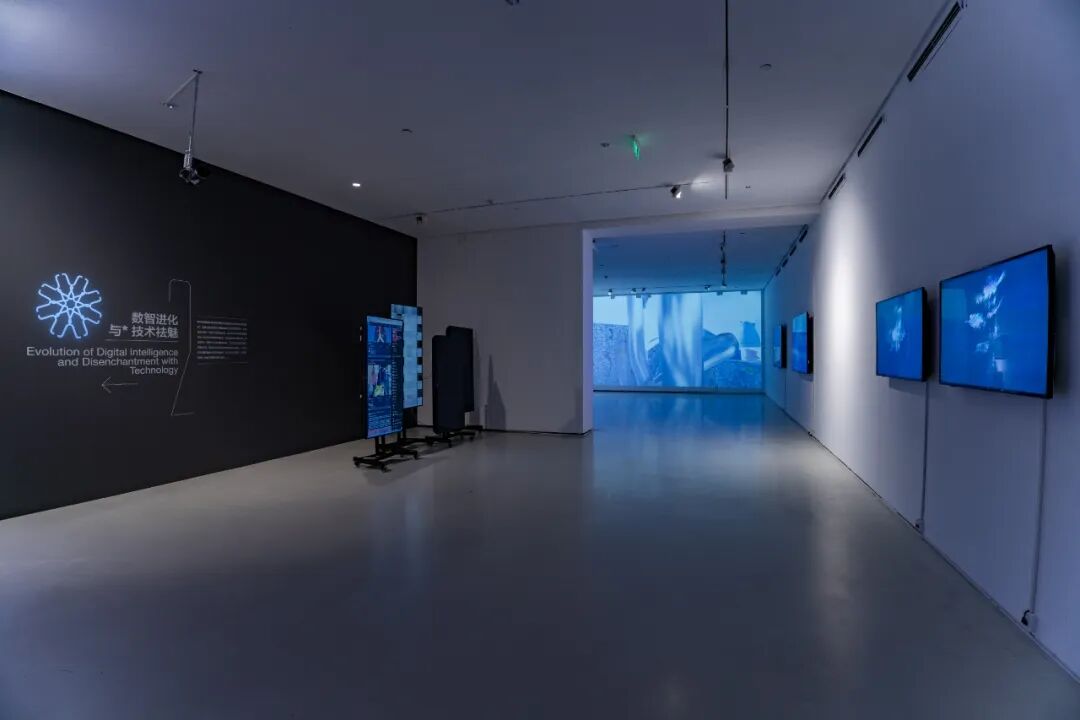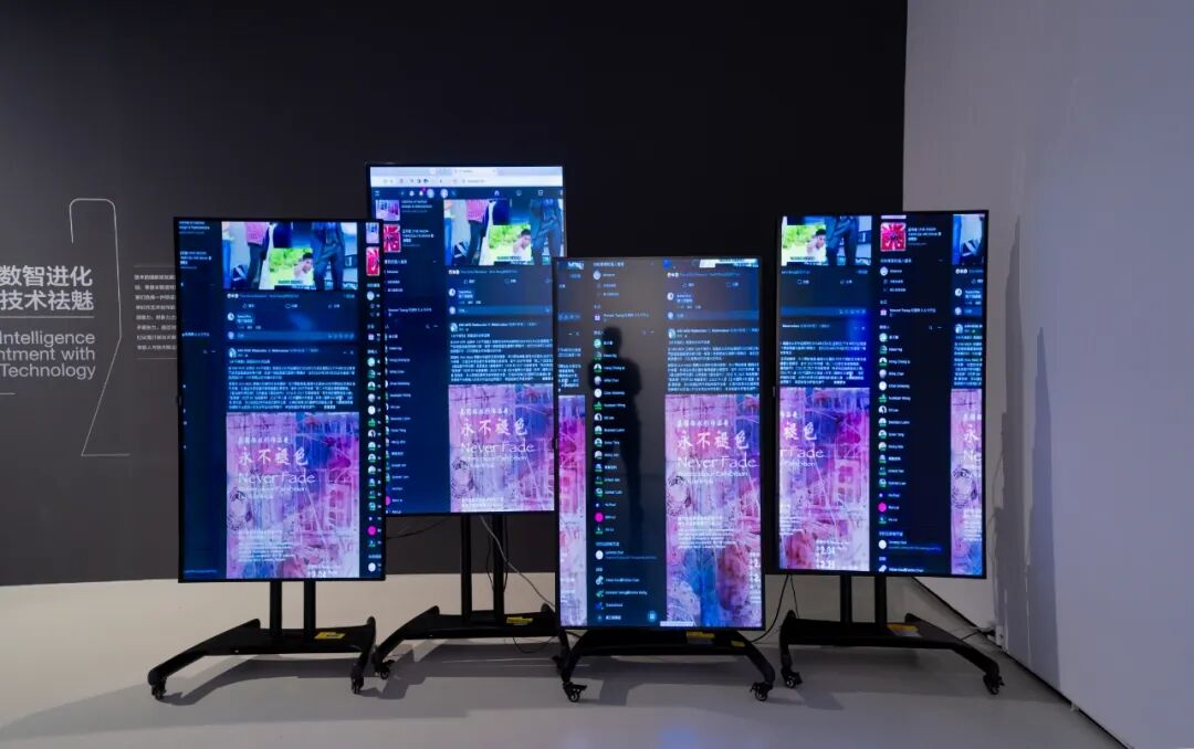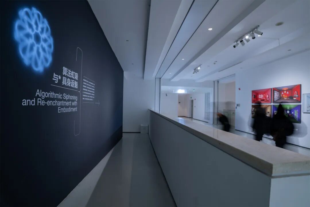 展览以“光晕变幻与代码赋魅”“数智进化与技术祛魅”“算法虹吸与具身返魅”三个版块作为学术观照与艺术展示的特定视角,艺术家们看似舍弃数字时代前夜的彼时灵韵,在遵从数据生存逻辑的法则里转以代码形塑数字光晕。从而,塑造出一种从解构到建构、从遮蔽到解蔽、从具身实践到智能嵌入的返魅新可能,呈现出创作时空的赛博格化、创作主体的去中心化、叙事结构的非线性化、传播介质的多媒体化以及接受群体的诸众化。