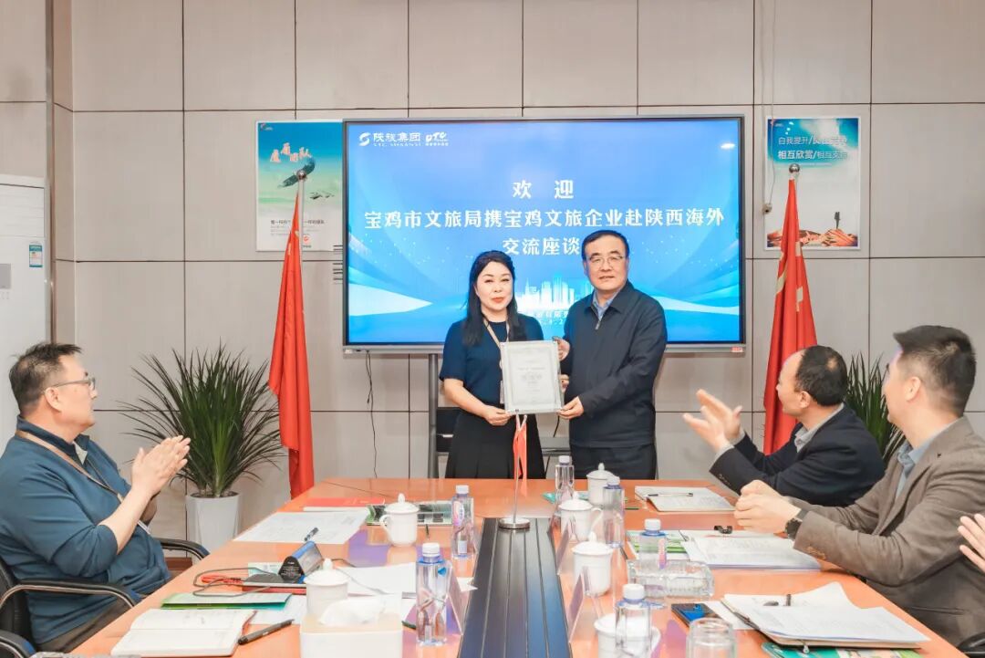 交流座谈会上,陕西海外总经理耿红艳介绍了陕西海外公司概况、发展历程、核心业务,宝鸡市文旅集团董事长代昕介绍了宝鸡市与陕旅集团、陕西海外合作意向和前景展望。与会企业和景区负责人结合自身资源优势、线路产品,重点围绕引客入宝、联合打造宝鸡精品游线、入境旅游和研学旅游等方面进行了热烈的讨论交流。双方初步达成合作共识,一是依托陕西海外境内外80余网点门店和自媒体销售渠道,持续提升宝鸡文旅产品线上线下曝光度,助力宝鸡旅游宣传营销体系建设。二是与宝鸡文旅企业合作,深挖“周文化”核心IP,在人文历史、自然山水和研学旅游方面,打造精品线路,陕西海外负责开拓市场销售渠道。三是结合陕西海外在中亚线路和入境游业务优势,提高国际游客入境宝鸡旅游人数。四是在宣传营销、景区运营和专业导游等方面联合培养专业人才。