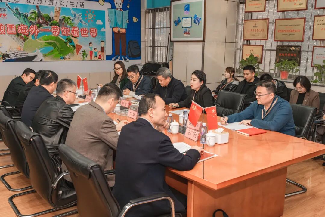 3月27日下午,宝鸡市文化和旅游局党组书记、局长武云带领宝鸡市文旅集团、太白山旅游景区管委会、法门文化景区管委会、关山草原景区管委会和相关旅行社、酒店负责人,赴陕西海外旅游有限责任公司(以下简称陕西海外)开展“引客入宝”交流座谈活动,全面启动了2025春季赴宝鸡主客源市场组团旅行社宣传营销工作。陕旅集团党委委员、副总经理贺东出席并讲话。