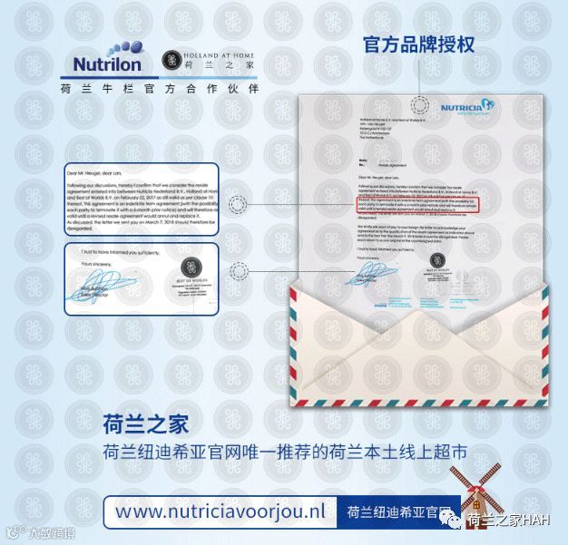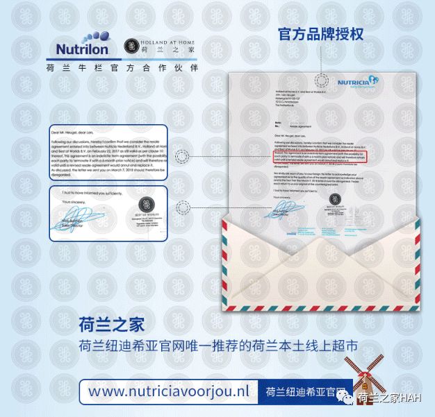 荷兰之家于2017年3月8日,正式与Nutricia纽迪希亚公司成为官方合作伙伴。到目前为止,荷兰之家是唯一一家与纽迪希亚达成协议、面对中国市场直供荷兰纽迪希亚产品的荷兰跨境电商公司。我们荷兰之家出售的所有纽迪希亚旗下品牌产品都是直接由荷兰Nutricia供应,保证100%正品和过硬的产品质量。
