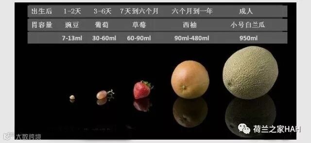 你知道吗?八成的婴儿会被过度喂养,胃被撑大。这样对宝宝真的不好,那么,婴儿的胃多大?下图是宝宝胃容量的发育图,新生儿的胃容量只有豌豆大小,那么是不是很快就变得非常大了呢?看了这个,你是不是还会给小宝宝一次灌下去100ml还觉得不够呢?