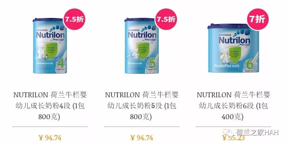 现在,荷兰之家的牛栏奶粉4~6段上新包装啦,旧包装现在都是7折起!荷兰牛栏奶粉追寻天然本质,不添加蔗糖、香精等人工添加剂,口味纯正,让宝宝养成健康饮食习惯,减少偏爱甜食的机会。力求近似母乳,提供孩子成长所需的营养成分,侧重于孩子自身免疫力的建立。荷兰原罐原装,一键下单,直邮到手,机不可失,快来囤货吧。