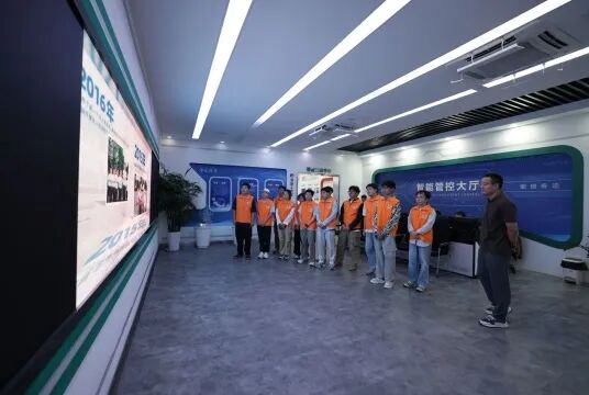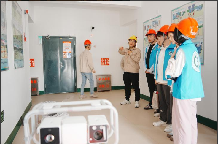 实践团成员带着对智能巡检技术的新体验走进变电站,在设备区,工程师现场演示了智能监控系统的运行流程。通过大屏幕实时数据可视化界面,同学们直观了解了设备状态监测、异常预警、故障诊断及应急处置的全过程。“这次研学让我亲身体验了从空中无人机巡检到地面智能监控的完整运维体系,这种'理论-实践-再认识'的学习模式,不仅验证了课堂所学,更让我们对智能电力运维的发展前景充满期待”,实践团成员丁东阳深有感触地说道。