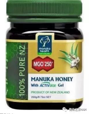 此款Manuka蜂蜜每公斤含有至少250毫克甲基乙二醛,这种物质能确保蜂蜜中含有大量的有机活性天然物质。而芦荟被称为帮助消化的物质。Manuka蜂蜜来自薄子木属棒(麦卢卡),这些植物主要生长在新西兰和澳大利亚。Manuka蜂蜜是一种具有独特的风味的单花香蜂蜜。蜂蜜颜色比三叶草蜜深。
