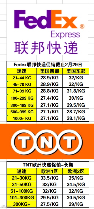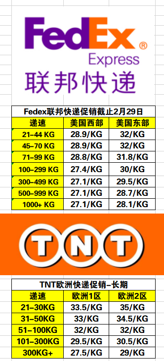 国际快递促销2月24日-2月29日
