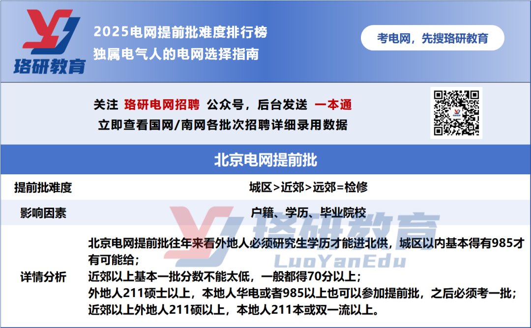以下是北京电网的提前批难度排行榜,全国各个省份电网提前批难度的排行榜请点击:全网独家!2025电网提前批难度排行榜重磅发布!