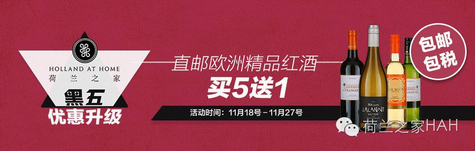 想要品尝一下欧洲经典红酒吗?喜爱红酒的你不容错过。黑五期间荷兰之家上线经典红酒系列,买5赠1还包邮,直邮到家,消息送到,手快抢哦~