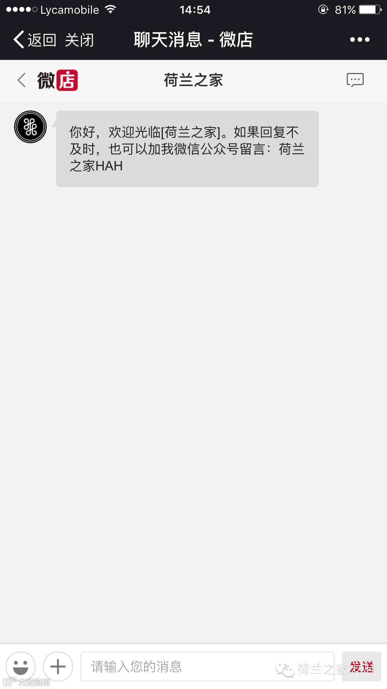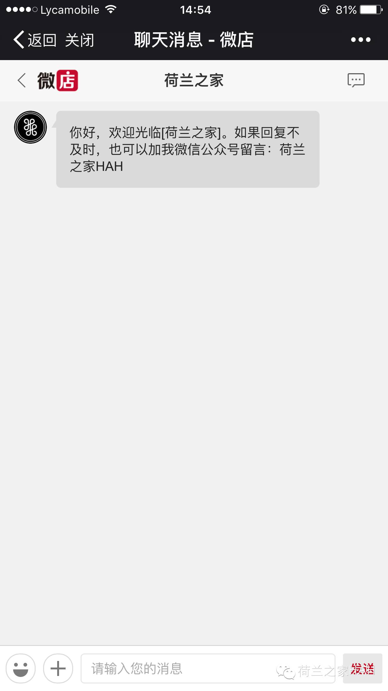 最后,您如果喜爱荷兰之家的微店,请点击收藏店铺哦,也欢迎您把荷兰之家微店分享更多好友。如果想要联系我们,您可以点击客服的图标哦,然后就会出现下图所示的页面啦~