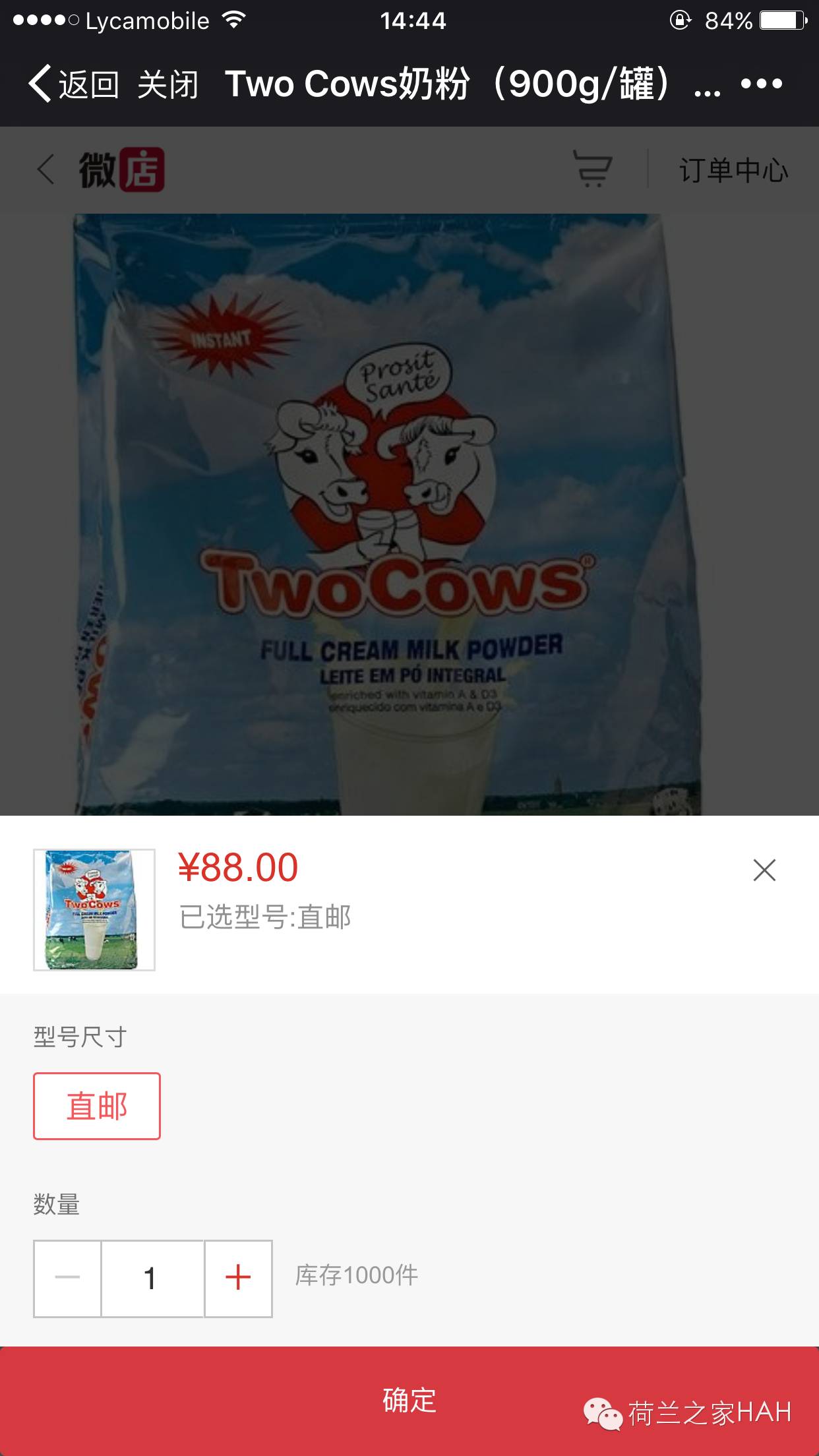 我们现在选择立即购买,页面上则会出现您索要购买的产品名称,产品图片,数量,选好后您就点击确定吧~