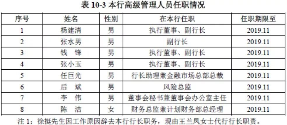 行长空缺一年之久,此前坊间曾推测,彼时该行的副行长或将是有力的继任竞争者。今年6月11日,中共苏州市委组织部公布苏州市市管领导干部任前公示名单,杨建清、钱锋拟任苏州银行党委委员,拟提名为苏州银行副行长,彼时依然无行长提名人选。