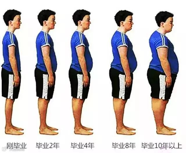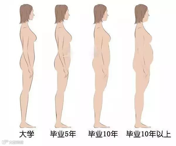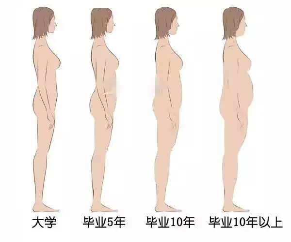 下面是男人和女人毕业十年后的身材对比,快来自测下: