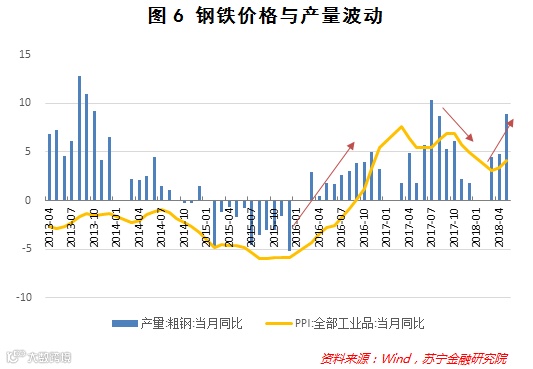 不过,值得强调的是,行政性的去产能压制下获得的价格上涨刺激了企业扩大产能的反弹动机。一旦政策趋于放松,产量便开始增加,由此带来了价格下跌(参见图6)。由此看来,行政性的去产能多少与经济中自然的均衡状态有所距离。