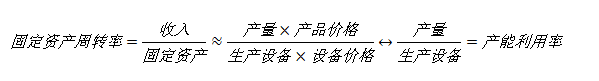 在此,我们以各行业的企业固定资产周转率平均水平这一指标来近似替代产能利用率。之所以可用这一指标替代,是因为有如下近似关系式:
