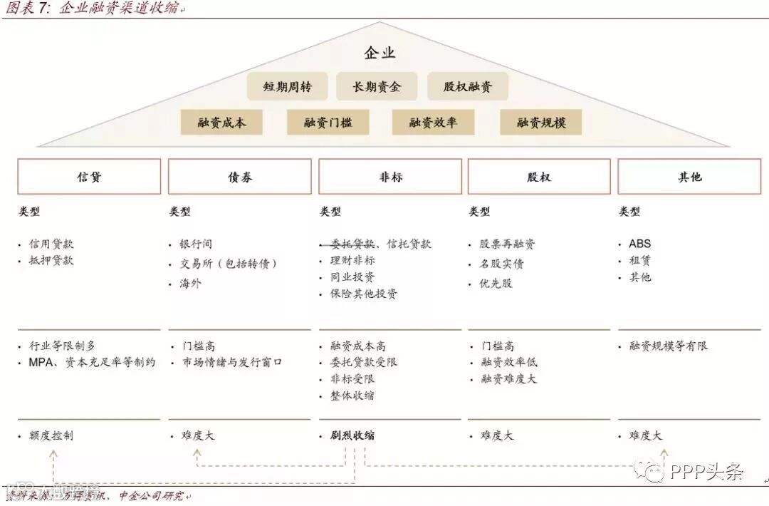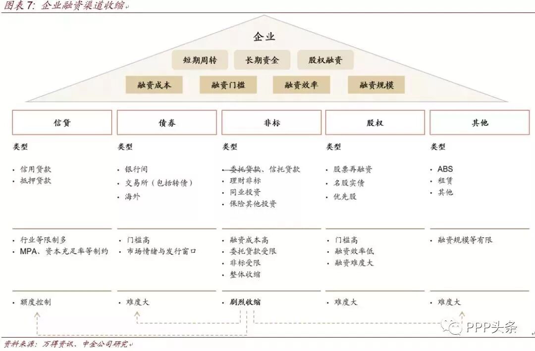 一般企业的融资渠道无非是:股、债、贷、非标、海外。股权融资难度很大,债券融资门槛高且近期风险偏好快速下降,贷款授信要求苛刻且额度吃紧,非标在资管新规落地后快速收缩,海外融资受到外管局和发改委更严格的限制。不难看出,融资渠道收缩非常明显。