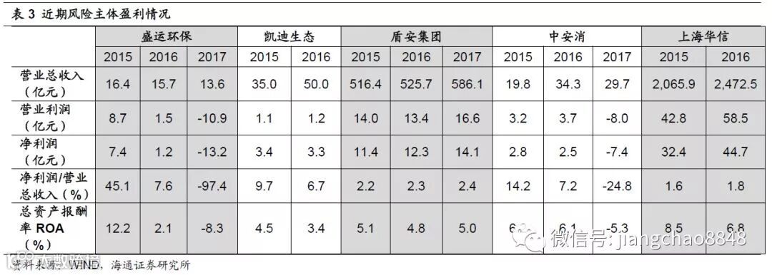 从货币资金对短期债务覆盖率上看,盾安集团、盛运环保、中安消都出现了明显的下滑,凯迪生态和上海华信尚未公布17年年报。